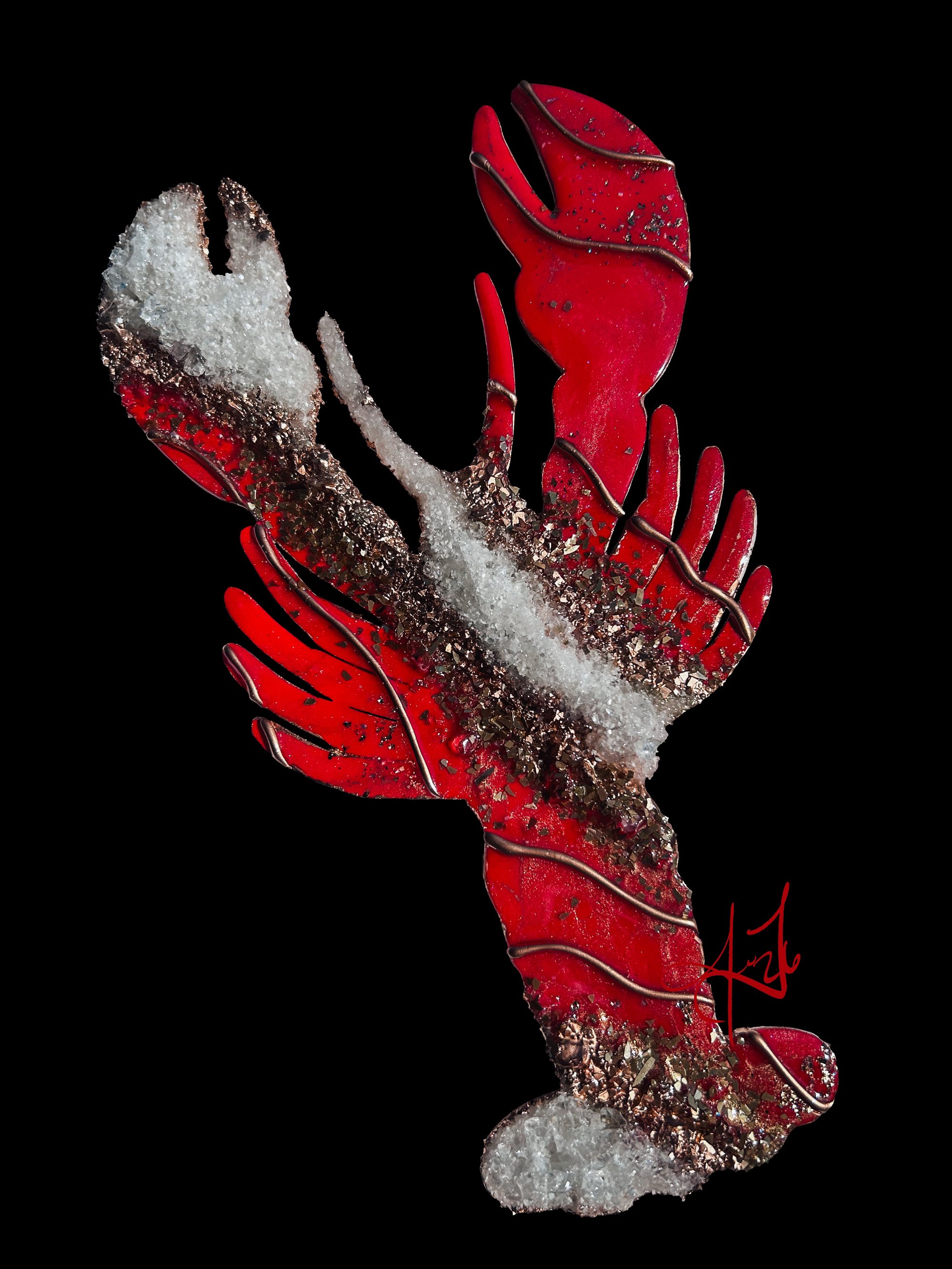 10" custom lobster epoxy piece. Framed in white shadow frame. Ready to ship.